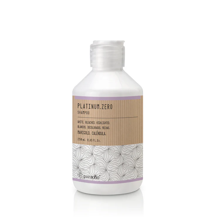 Platinum.Zero Shampoo es el champú de Greensoho especialmente indicado para los cuidar y mantener los cabellos muy claros, blancos o decolorados. Este tipo de cabellos necesitan un cuidado especial para controlar y evitar la aparición de los indeseados tonos amarillentos y anaranjados.